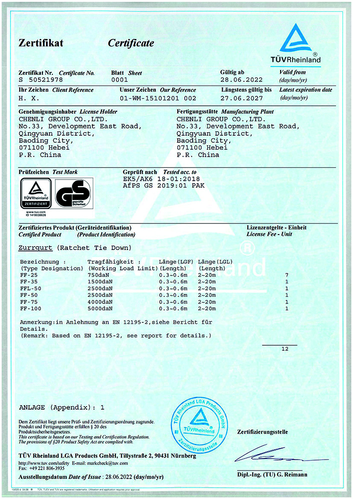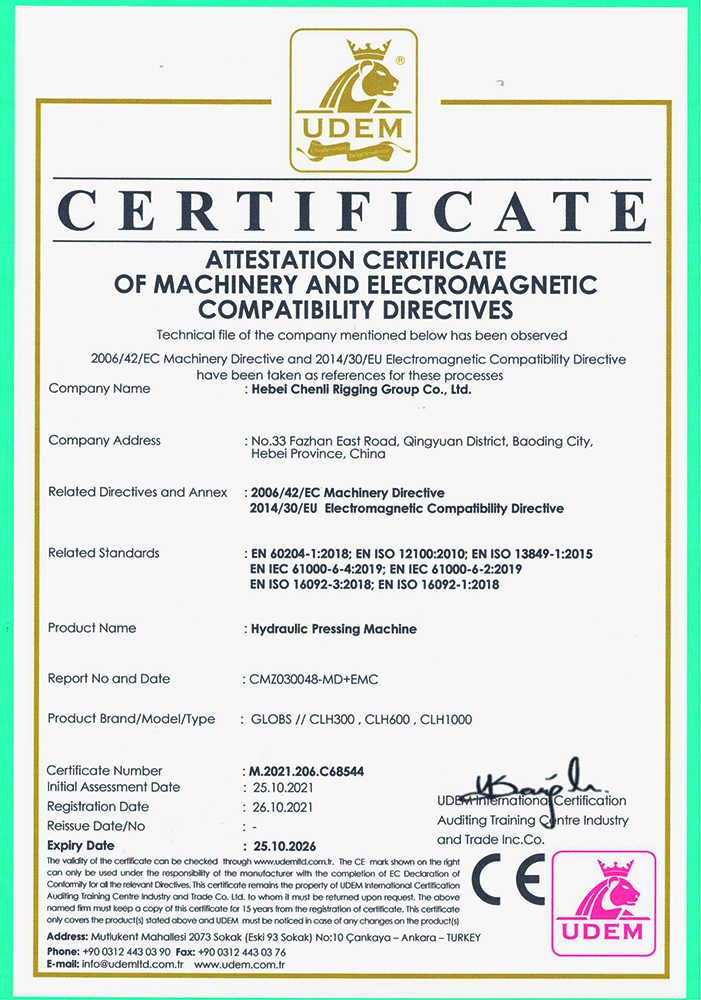 自2000年以來,辰力集團用科學管理和科技武裝企業(yè),投資2000余萬元建立了集團質量檢測中心。在同行業(yè)先行通過IS09001國際質量管理體系標準認證。2005年產品通過了歐盟的CE和德國的GS產品質量安全認證。2008年以來辰力集團先后獲得了“起重鏈條”、“起重吊裝帶”、“鏈條葫蘆”、“起重吊索具”等貳拾多項國家發(fā)明專 利和國家實用新型專 利。獲得《河北省名 牌產品》、《河北省著名商標》、《高新技術企業(yè)》、《專精特新小巨人》、《 國家行業(yè)標準起草單位》等多項榮譽和稱號,是全國工商聯(lián)五金商會理事單位,并得到央視的認可,辰力牌產品在央視第七套欄目中播出。