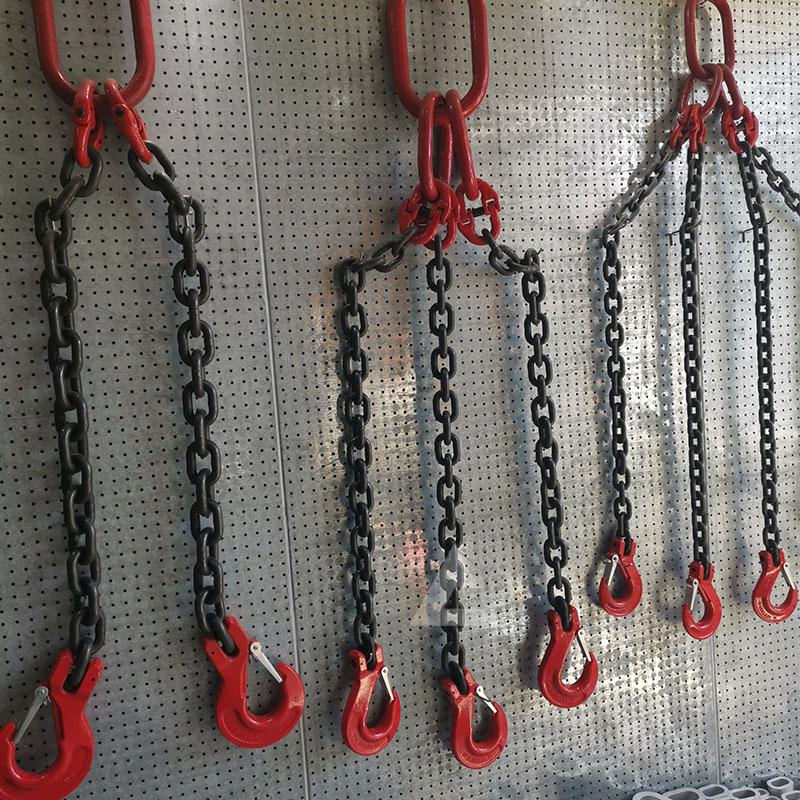 單腿鏈條索具在使用的時候,工人的速度沒有把握好,速度太快或者緊急進行起動,就會造成重物出現脫鉤情況,墜落出現事故。在進行起吊的時候,沒有對鏈條索具進行檢查,在吊鉤有變形的情況下進行使用,也會出現脫鉤的情況。在對貨物進行起吊的過程中,貨物出現了不穩,鏈條的吊具在空中進行搖擺,鉤頭因慣性也會造成貨物脫鉤出現事故。四腿鏈條成套索具的吊具沒有防脫鉤的裝置,在進行貨物上升的過程中,也容易出現脫鉤的情況發生。