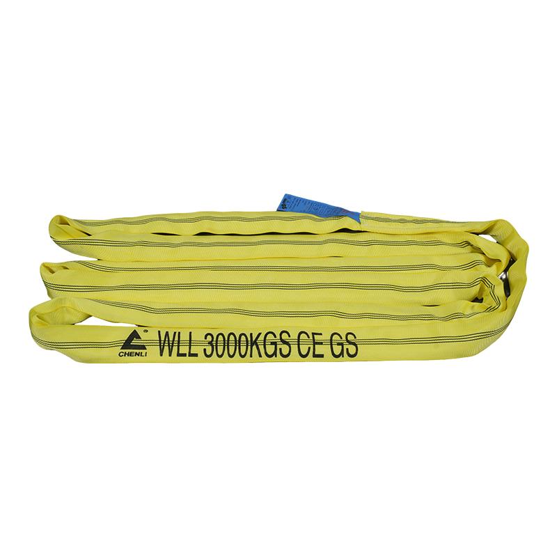 圓形吊裝帶是采用高強度聚脂工業長絲(PES)制成,內部承載芯采用無極環繞以構成 循 環狀,外部使用PES織成不受力的套管對承載芯加以保護。